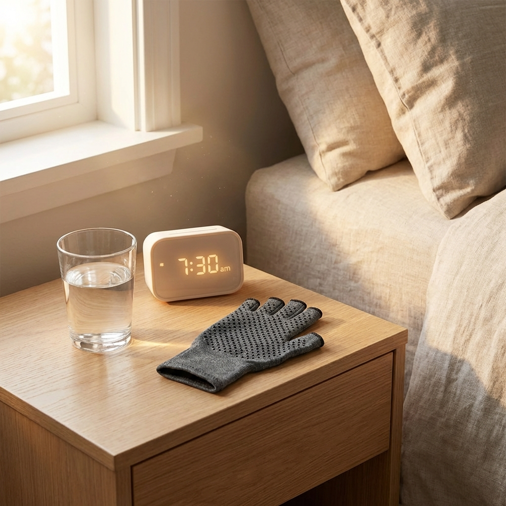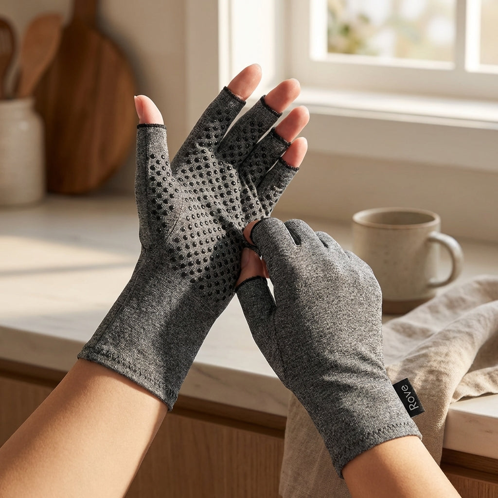 Slide your Rove gloves on in the morning or before bed — open-finger design means even stiff hands can put them on without struggle.