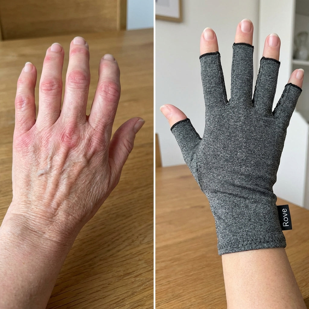 Unlike creams that sit on the surface, Rove's compression works directly on the inflamed joints — improving circulation and reducing the swelling that makes every day a battle.