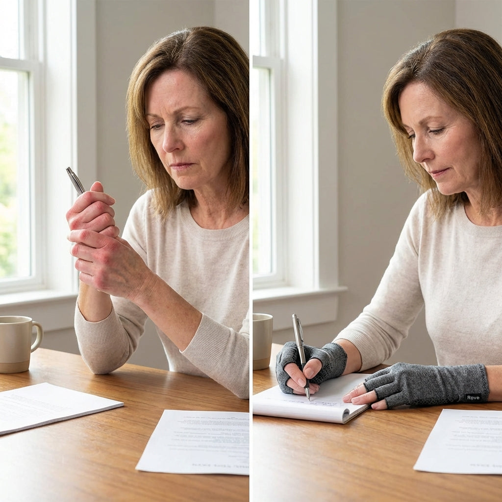 Rove is thoughtfully designed with premium compression technology to support natural joint relief, restored hand function, and daily independence — without harsh medications or shortcuts.